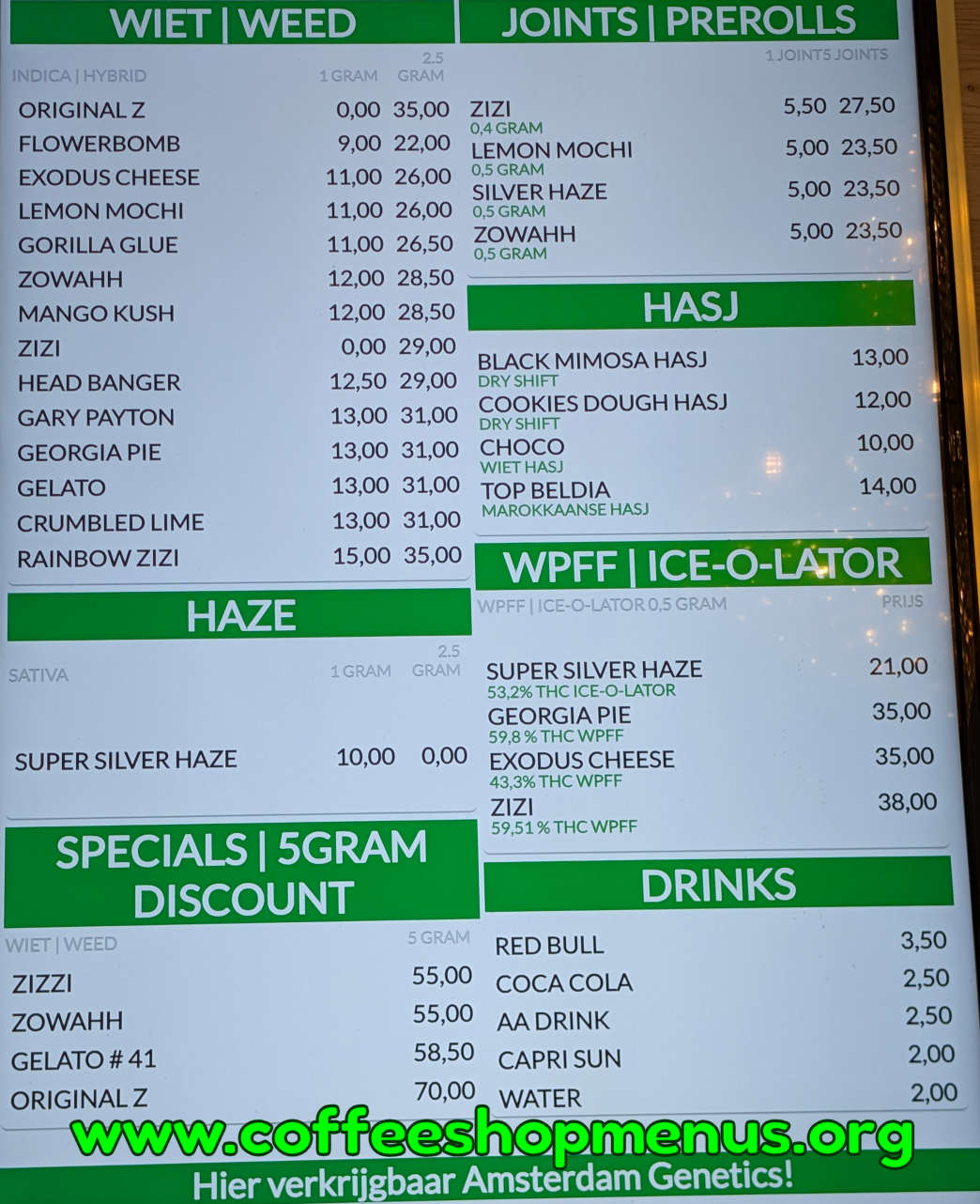 Complete archive of all De Schavuit menus