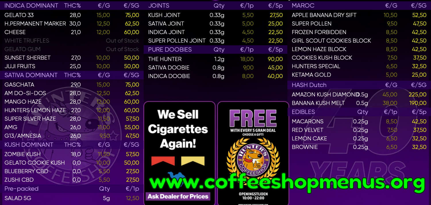 Complete archive of all Hunter's Rotterdam menus