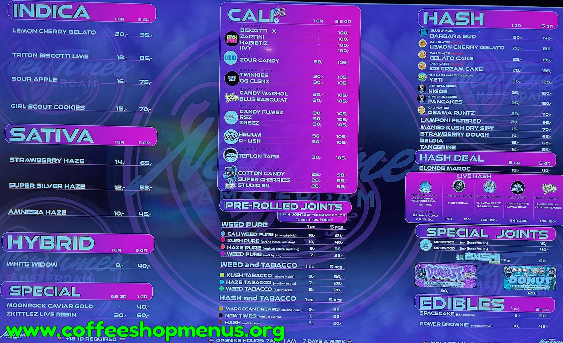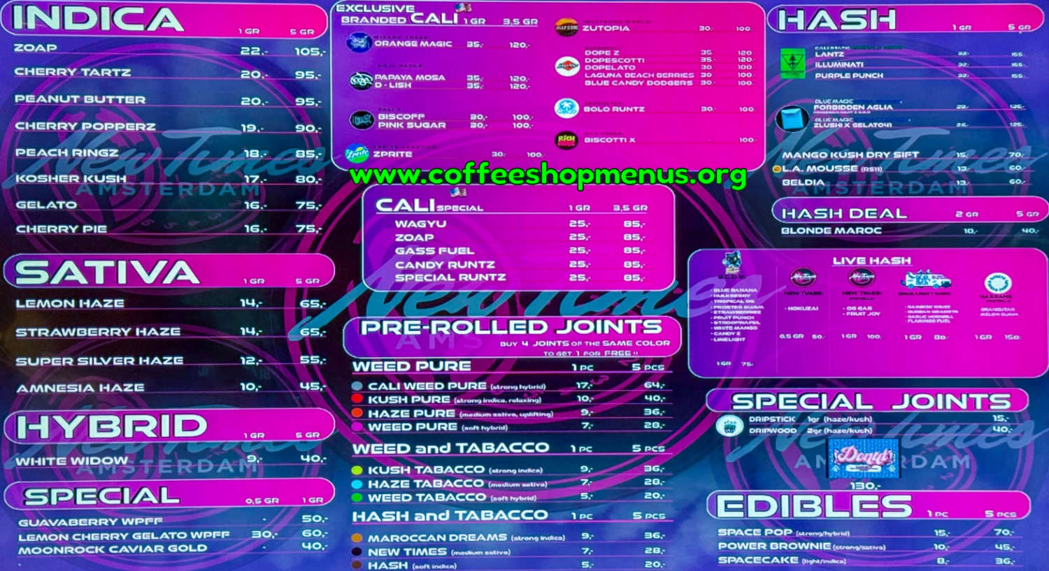 Latest Menus All Menus Amsterdam Other Cities About Us Legacy Stuff