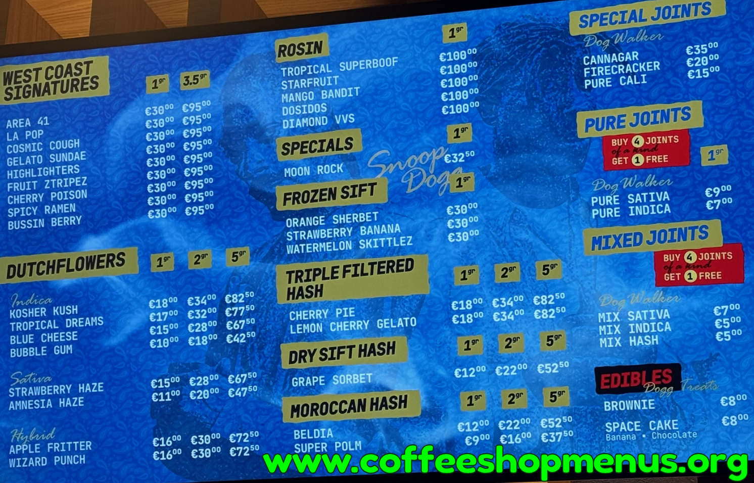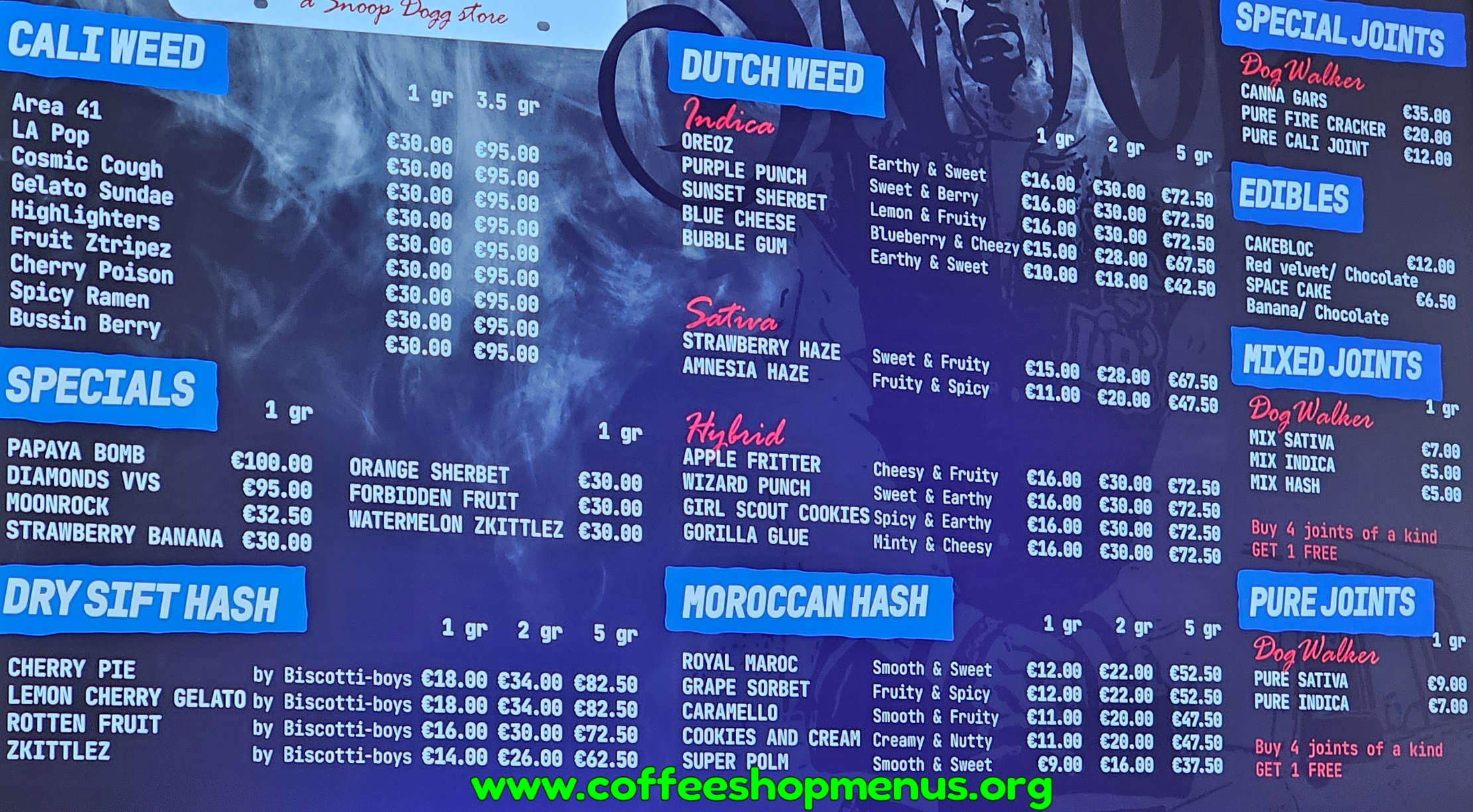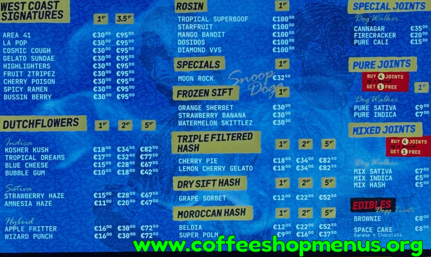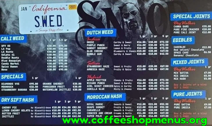 Complete archive of all SWED a Snoop Dogg Store menus