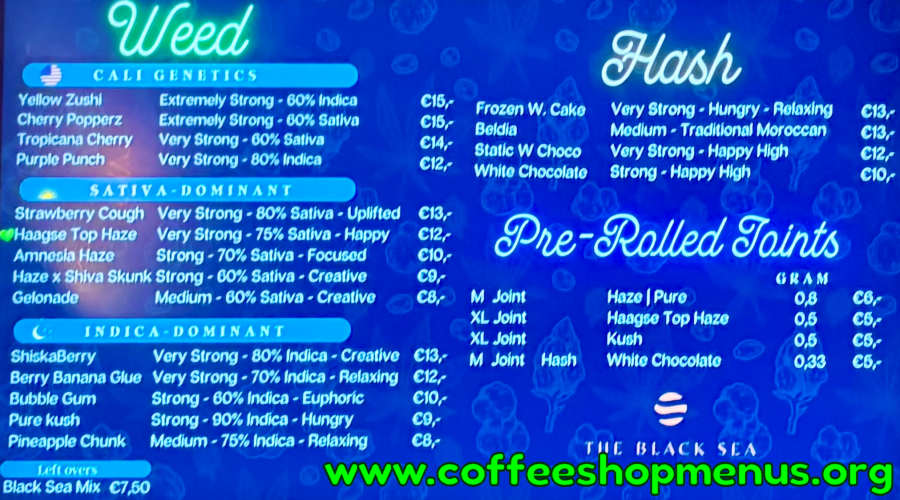 The menu above is the most recent for Black Sea.