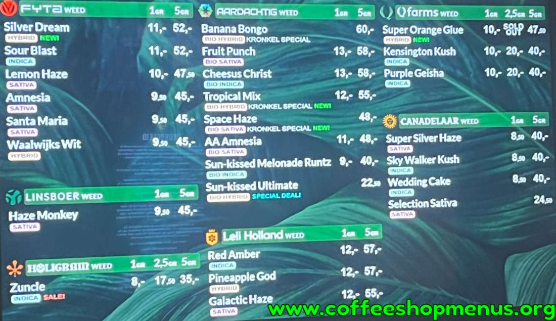 The menu above is the most recent for Kronkel.
