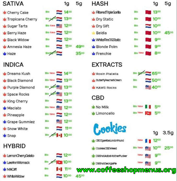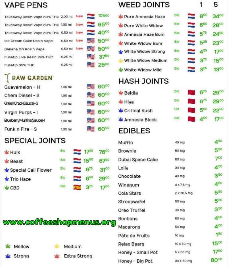 The menu above is the most recent for De Kruidenier Cannabis Takeaway.