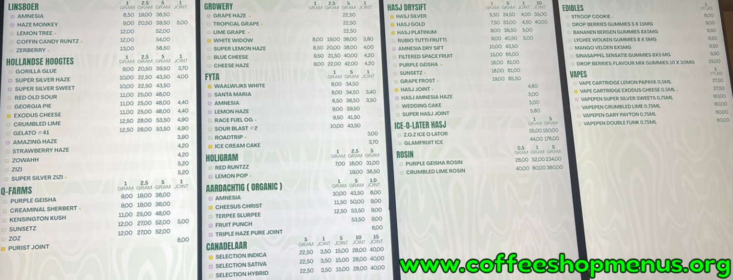 The menu above is the most recent for Mary Jane.