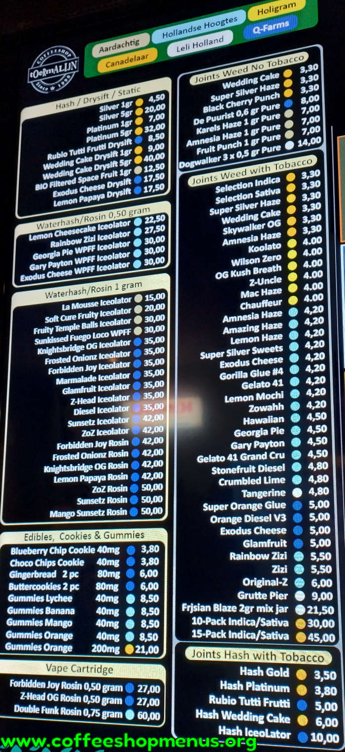 The menu above is the most recent for Toermalijn.