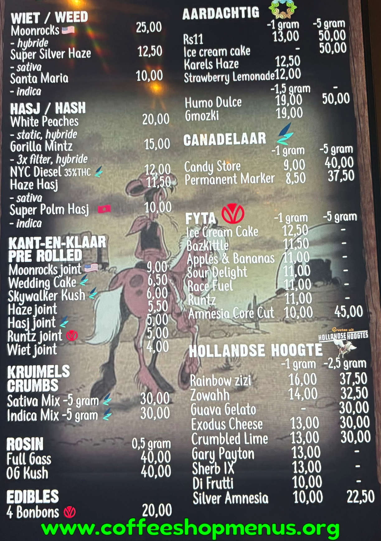 Complete archive of all Lucky Luke menus