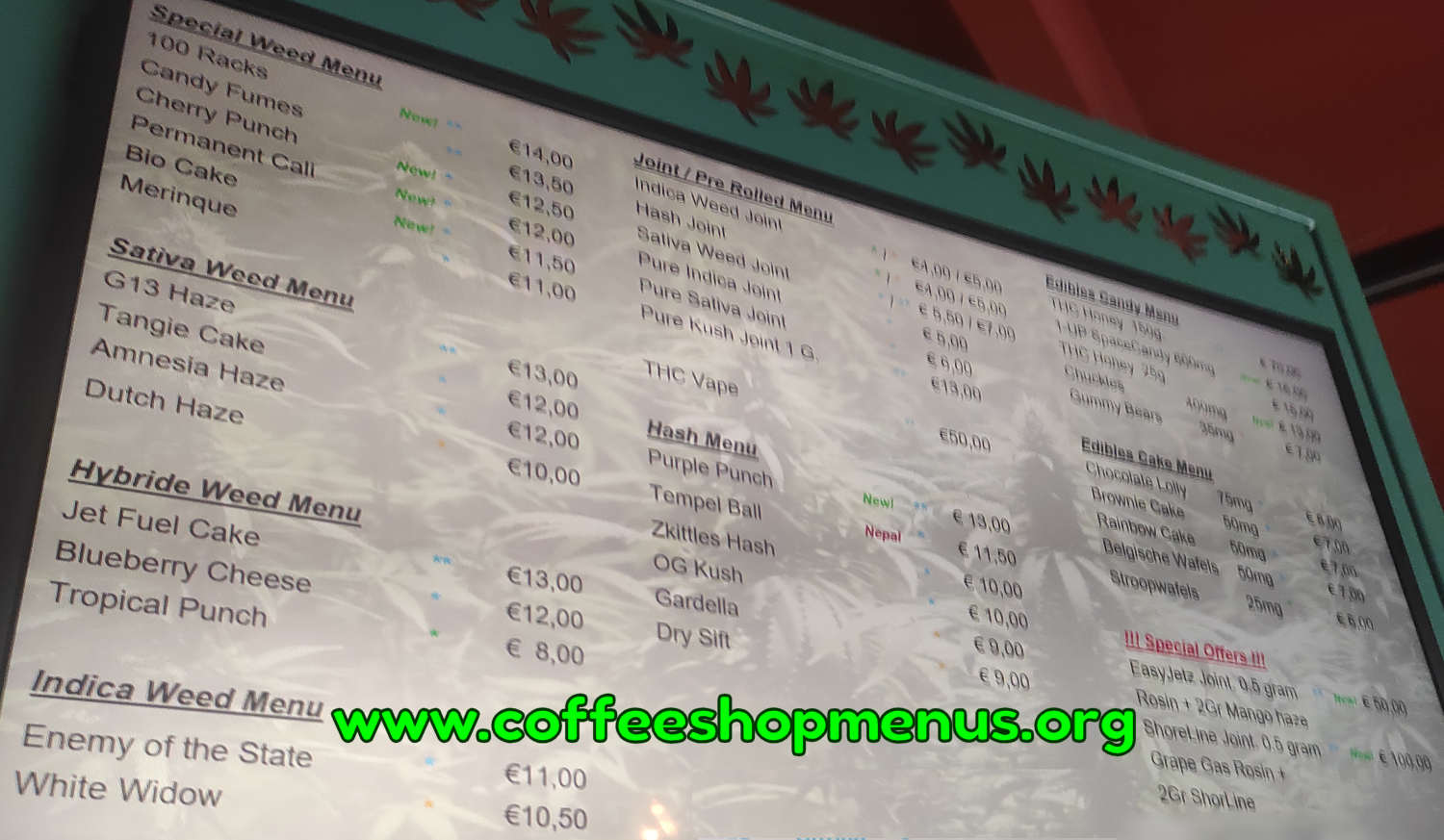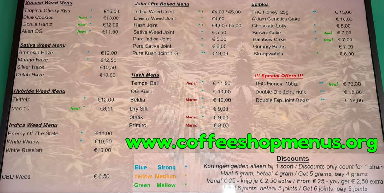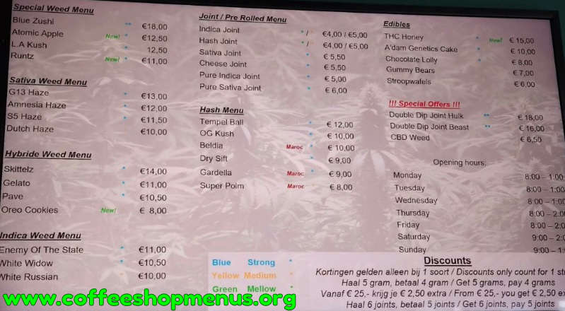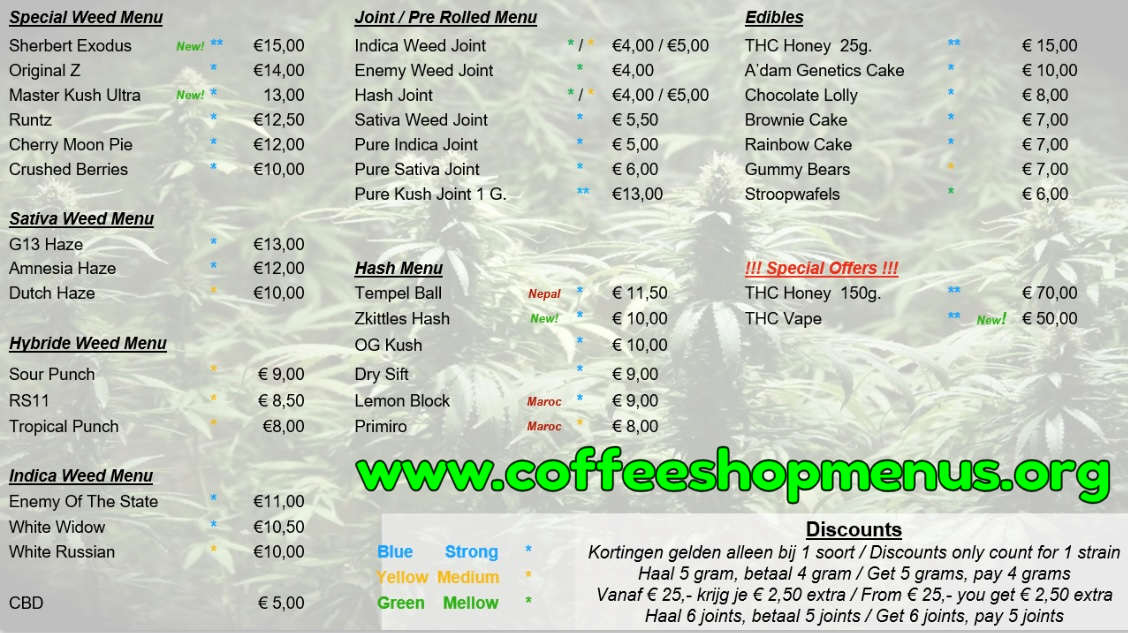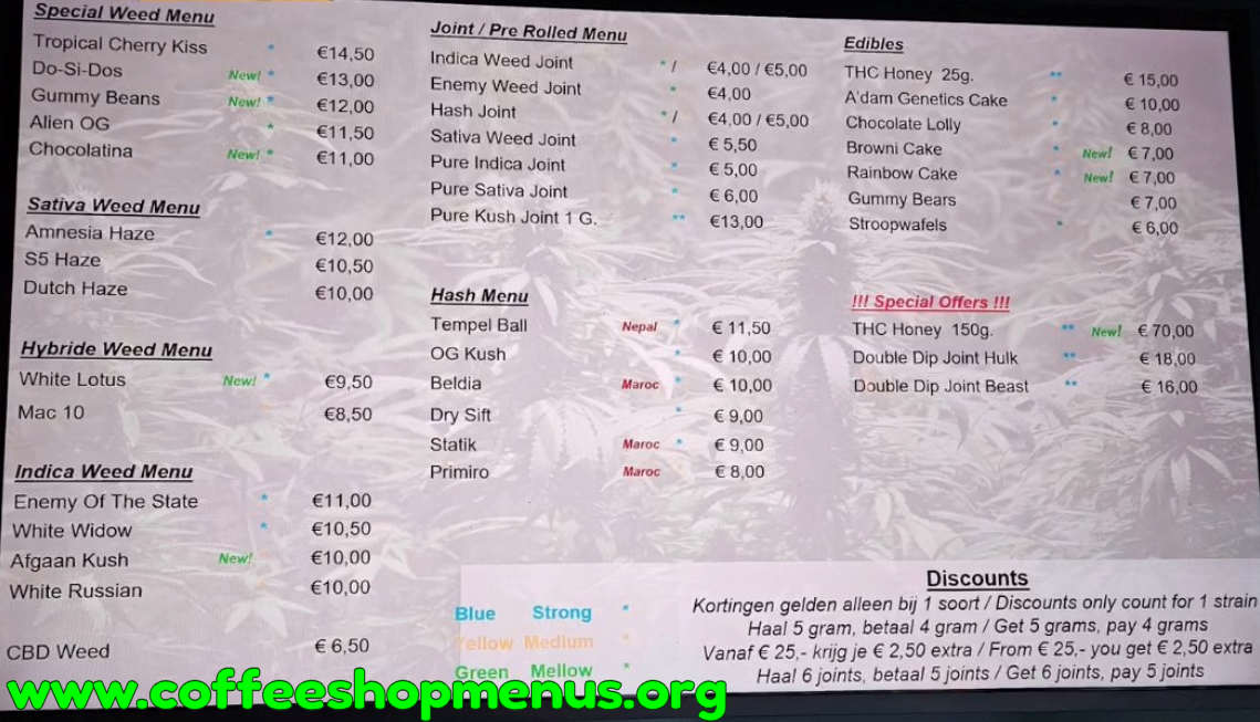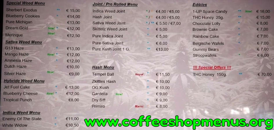 Complete archive of all Willie Wortel Sativa menus