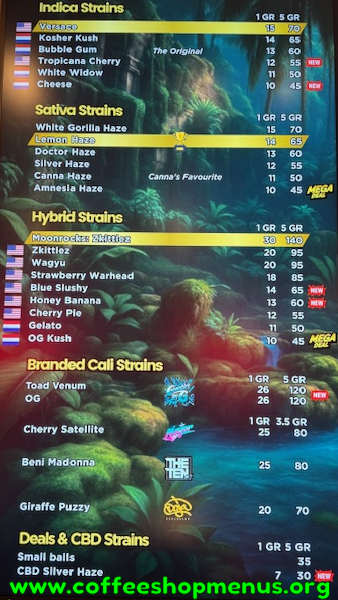 Complete archive of all The Canna Club menus