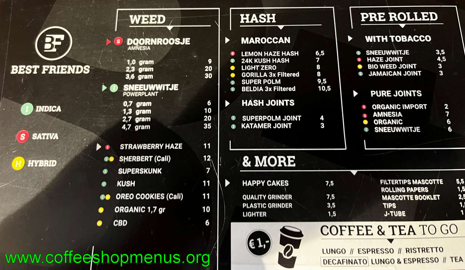 Complete archive of all Best Friends Oost menus