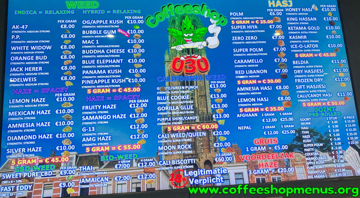 The menu above is the most recent for Coffeeshop 030.