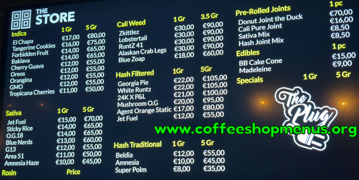 The menu above is the most recent for The Plug Store.